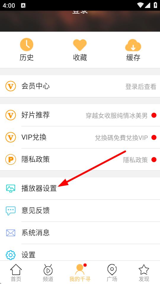 2、在我的千尋頁面中,找到并點擊播放器設(shè)置選項。