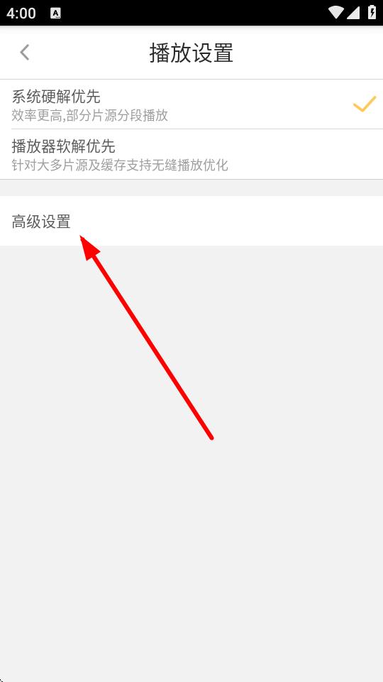 3、進入播放設(shè)置頁面后,點擊高級設(shè)置選項。