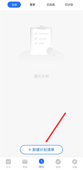 2、在待辦頁(yè)面,點(diǎn)擊新建計(jì)劃清單,進(jìn)入創(chuàng)建計(jì)劃頁(yè)面。