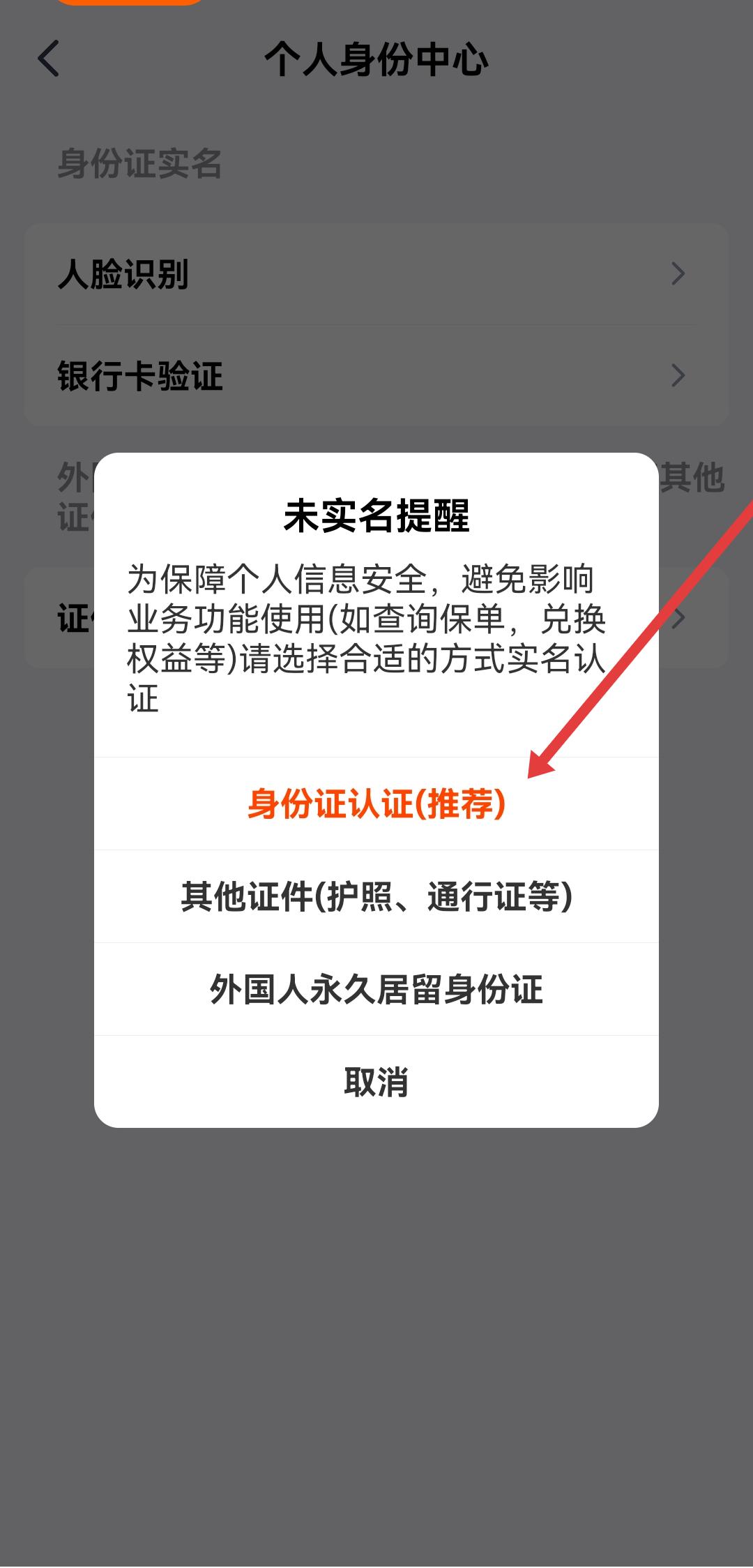 3、在彈出的未實(shí)名提醒彈窗中,點(diǎn)擊身份證認(rèn)證按鈕,按系統(tǒng)指引提交身份證信息,完成實(shí)名認(rèn)證。