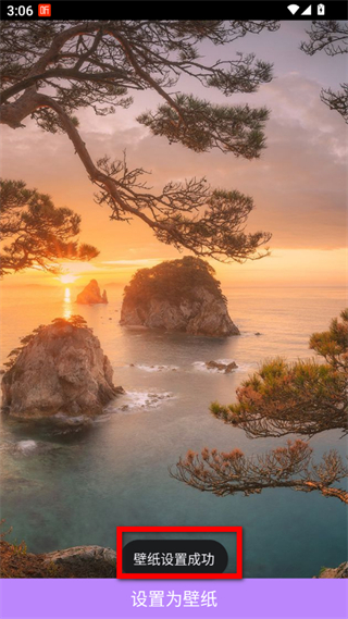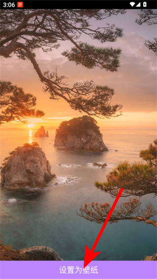2、在壁紙?jiān)斍榻缑?,點(diǎn)擊設(shè)置為壁紙選項(xiàng),進(jìn)行壁紙?jiān)O(shè)置操作。
