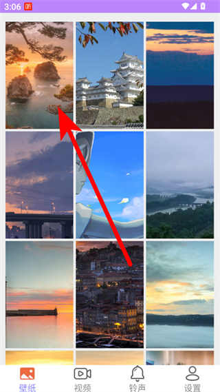1、在壁紙選擇頁(yè)面,點(diǎn)擊喜歡的壁紙,進(jìn)入壁紙?jiān)斍榻缑妗?