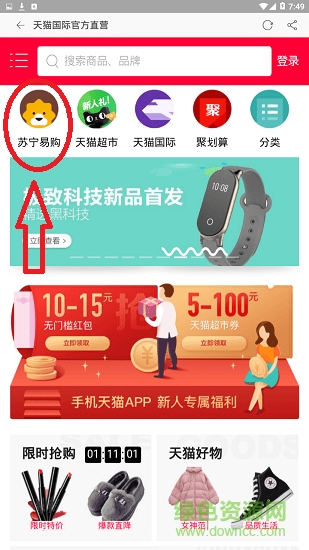 一、在天貓商城首頁直接點擊“蘇寧易購”。