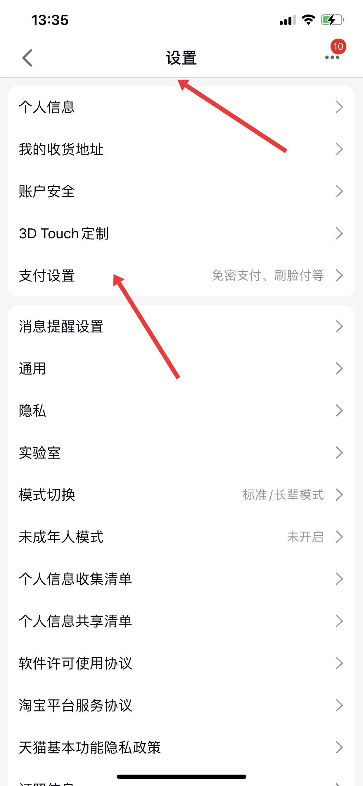 1、打開淘寶App,進入設置界面,點擊支付設置。