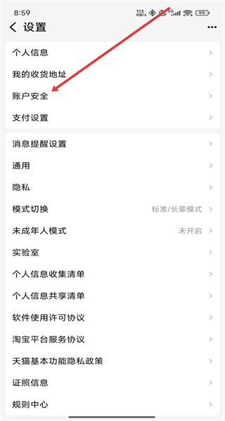 1、可以打開設置頁,選中賬戶安全選項,進入賬戶安全設置的專屬界面。