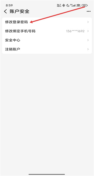 2、在賬戶安全設置界面,通過點擊修改登錄密碼選項,進入身份驗證步驟。