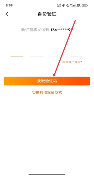 3、在身份驗證頁面,點擊獲取驗證碼,使驗證碼發(fā)送至綁定的手機號。
