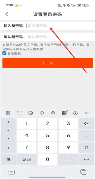 4、輸入驗證碼后,進入設置登錄密碼頁面,在輸入框填寫符合規(guī)范的新密碼。
