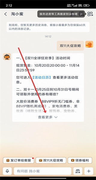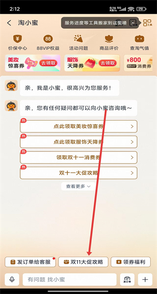 3、在進入到客服咨詢頁面中,可以點擊雙11大促攻略進行咨詢。
