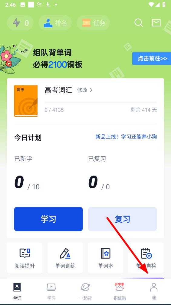 3、當每日的單詞量學習完畢后,還可以進行自檢。