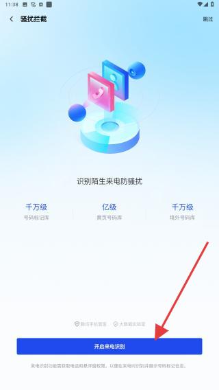 2、進(jìn)入騷擾攔截頁(yè)面后,點(diǎn)擊底部開始來(lái)電控制按鈕,若系統(tǒng)彈出權(quán)限申請(qǐng),需點(diǎn)擊允許完成授權(quán),否則攔截功能無(wú)法生效。