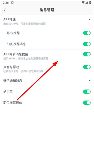4、在消息管理頁面,可根據(jù)需求關(guān)閉消息推送通知開關(guān)。