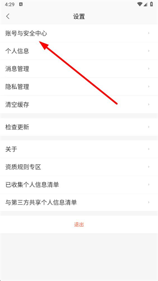 2、進入設(shè)置頁面后,點擊賬號與安全中心選項。