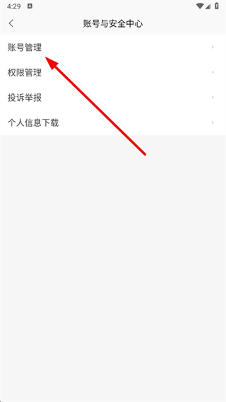3、在賬號與安全中心頁面,點擊賬號管理選項。