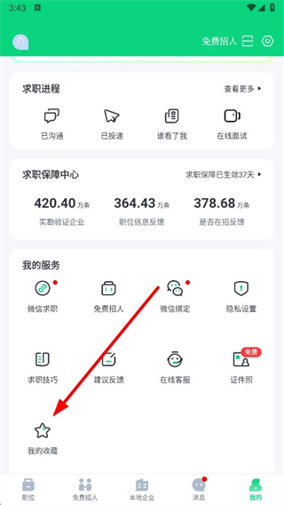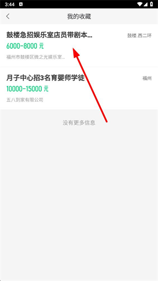 3、在我的收藏界面,選擇要取消收藏的職位并點擊,進入該職位的詳情頁面。