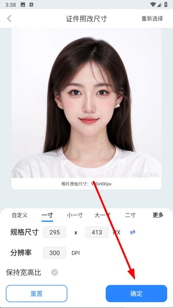 4、完成尺寸設置后,點擊頁面右下方的確定按鈕,完成證件照尺寸修改。