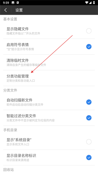 3、在設(shè)置頁面中點擊分類功能管理進入分類功能的管理頁面。