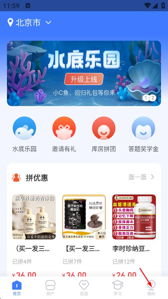1、打開云庫房應用,在首頁點擊右下角“我的”選項,進入個人中心頁面。