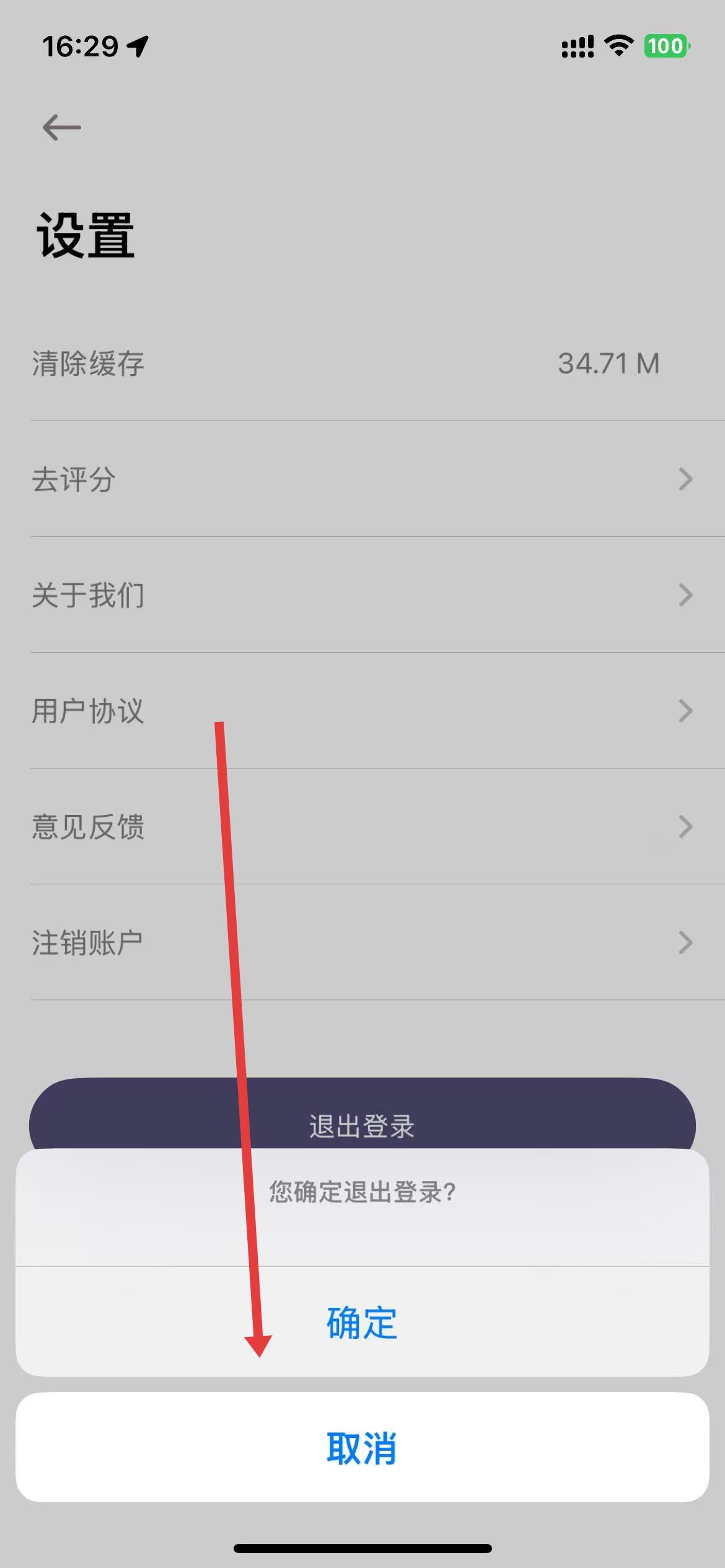 4、在彈出提示框中點擊確定,即可完成退出賬號。