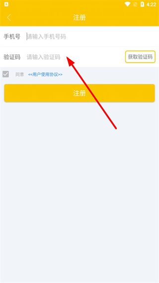 4、在注冊(cè)頁(yè)面,輸入手機(jī)號(hào),獲取并填寫驗(yàn)證碼,勾選同意協(xié)議后點(diǎn)擊注冊(cè)按鈕,完成賬號(hào)注冊(cè)。