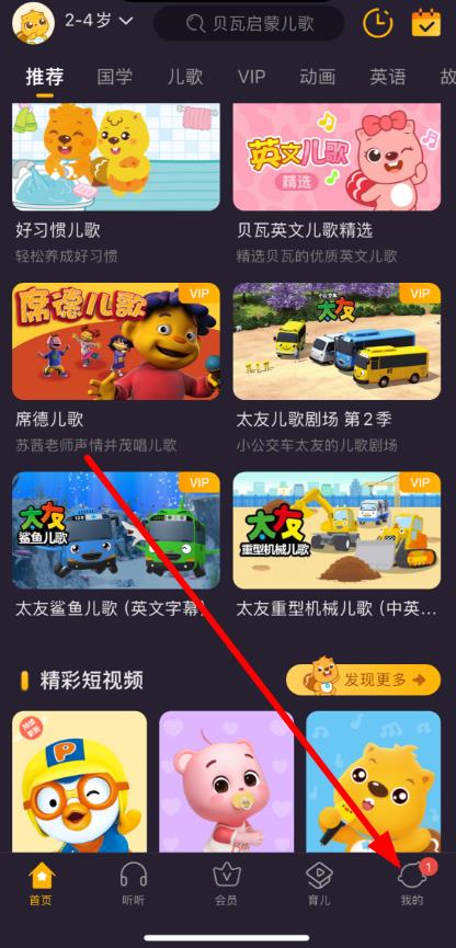 1、打開貝瓦兒歌App,點(diǎn)擊底部導(dǎo)航欄中的我的進(jìn)入個(gè)人頁(yè)面。