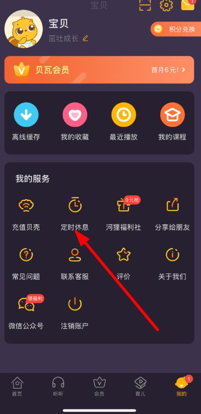 2、在個(gè)人頁(yè)面的我的服務(wù)板塊中,找到并點(diǎn)擊定時(shí)休息選項(xiàng)。
