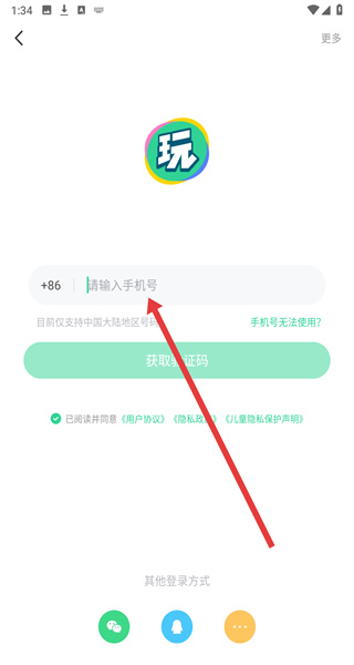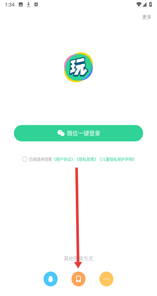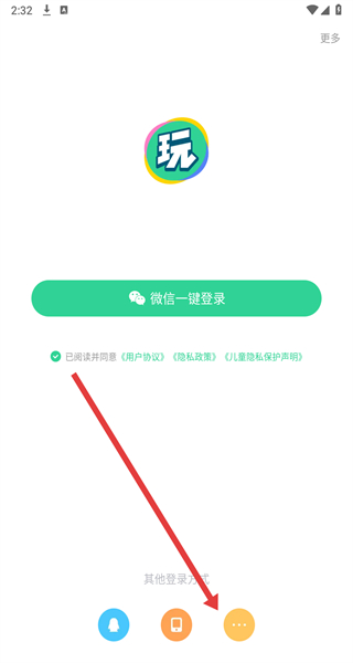 2、在進(jìn)入到會(huì)玩登錄頁(yè)面中,可以點(diǎn)擊箭頭指向按鈕,查看更多登錄方式。