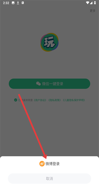 3、在彈出的登錄方式中,點(diǎn)擊微博登錄按鈕,準(zhǔn)備使用微博賬號(hào)進(jìn)行登錄。