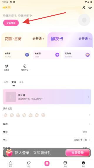 2、進(jìn)入個(gè)人主頁內(nèi),點(diǎn)擊立即登錄的功能按鈕。