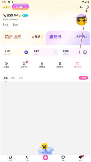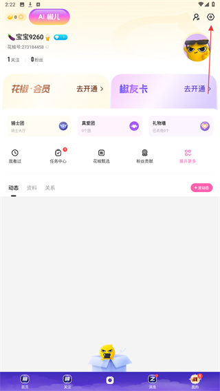 2、進(jìn)入我的頁面內(nèi),點(diǎn)擊右上角設(shè)置的功能按鈕。