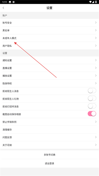 3、進(jìn)入設(shè)置的界面內(nèi),點(diǎn)擊未成年人模式的按鈕。