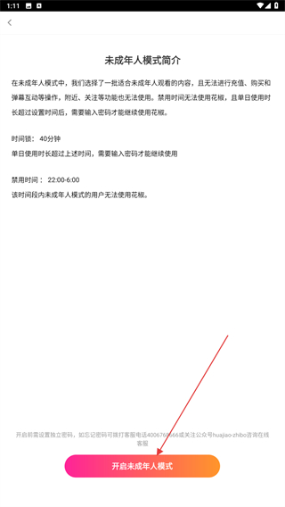 4、了解該模式后,再點(diǎn)擊下方開啟未成年人模式即可。