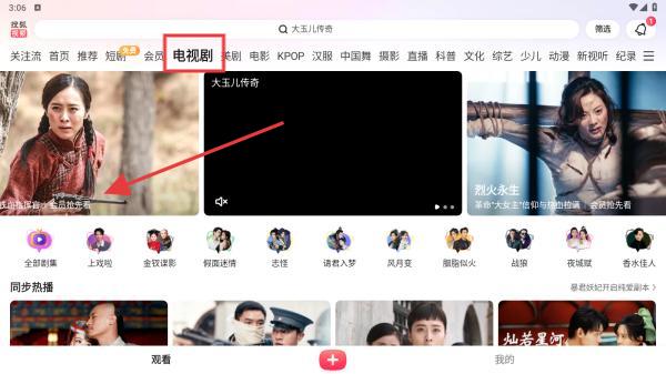 1、進入到app首頁,在搜索下一欄找到電視劇并從中點擊想投屏的視頻。