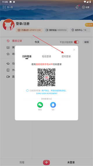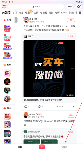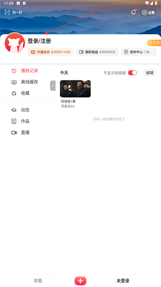 1、打開搜狐視頻的APP,進入時點擊右下未登錄的按鈕。