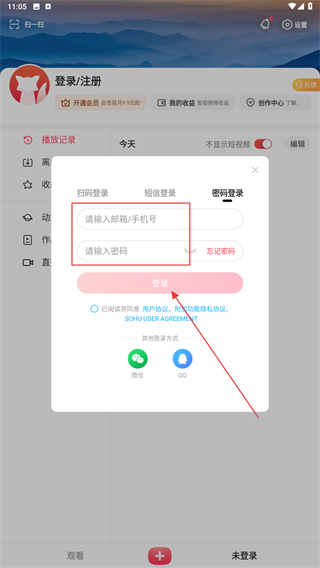 4、輸入手機號、密碼后,再點擊登錄的按鈕即可完成。