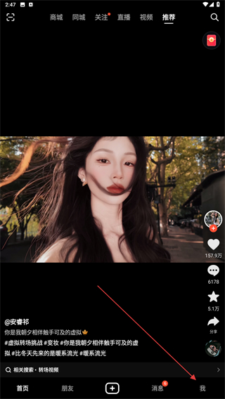 1、啟動火山小視頻的APP,進入首頁點擊右下角我。