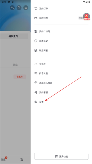 3、在右側(cè)彈出的菜單欄中,點擊下方設(shè)置的功能按鈕。