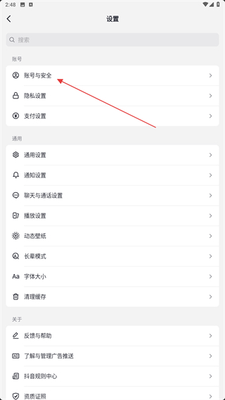 4、進入設(shè)置的界面內(nèi),點擊上方賬號與安全的按鈕。