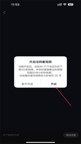 3、當(dāng)頁面彈出提示后,點擊開啟的按鈕即可開始離線。