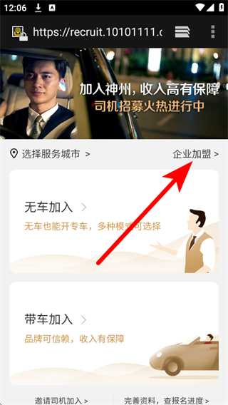 2、進(jìn)入到加盟的頁面后,我們可以點(diǎn)擊企業(yè)加盟的按鈕。