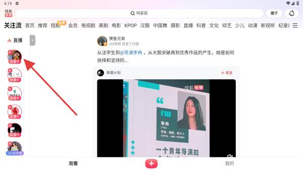 1、在首頁頂部導(dǎo)航欄或左側(cè)菜單欄,點(diǎn)擊直播的入口,進(jìn)入直播專區(qū)。
