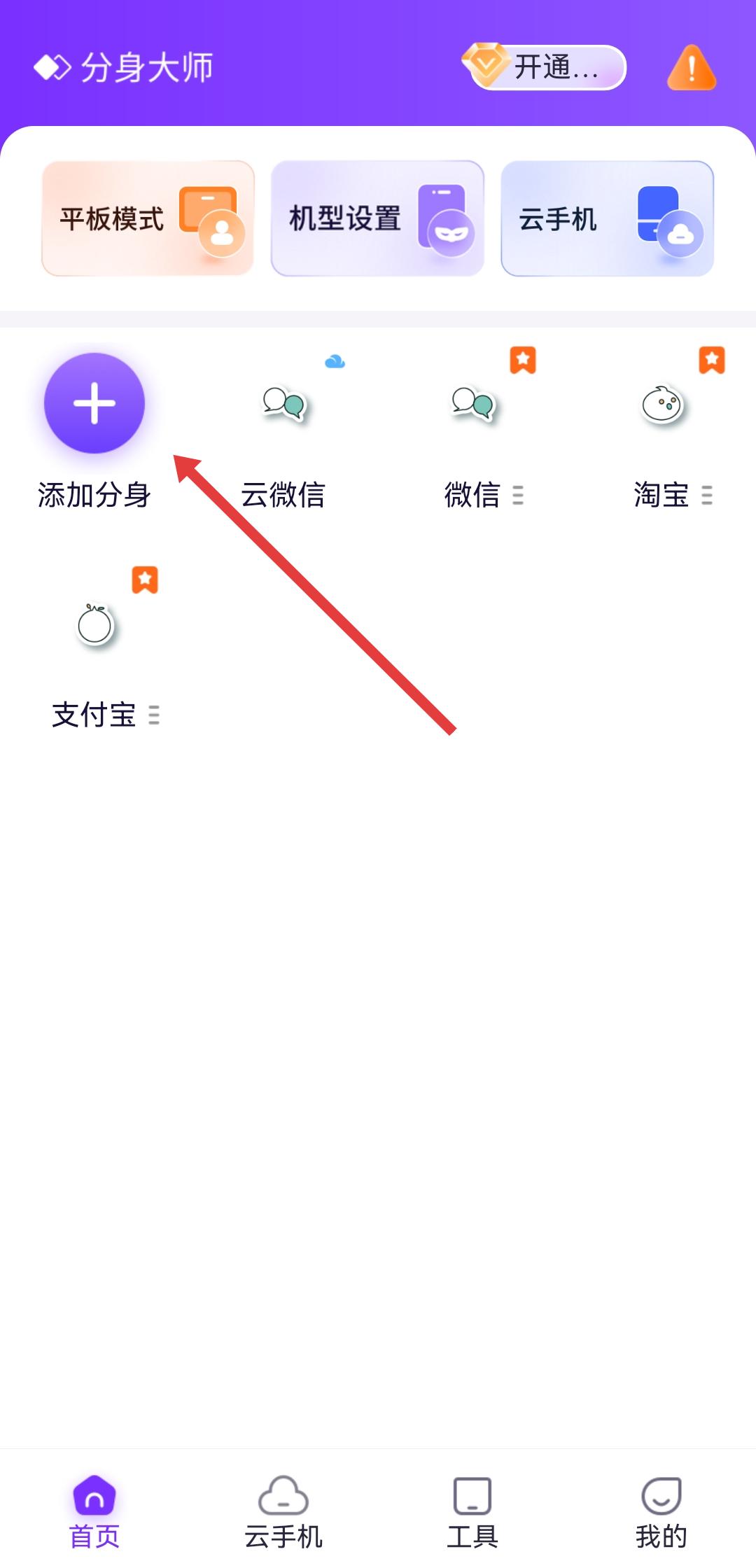 1、在分身大師主界面,點擊左側(cè)添加分身按鈕,進(jìn)入添加分身的應(yīng)用選擇頁面。