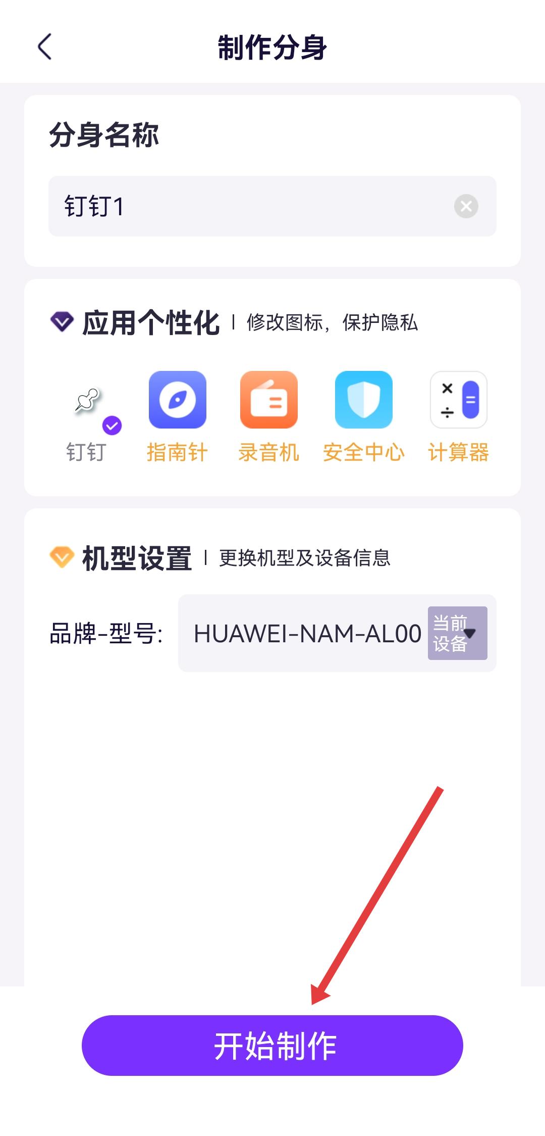 3、進(jìn)入制作分身頁面后,設(shè)置分身名稱等,然后點擊底部開始制作按鈕。