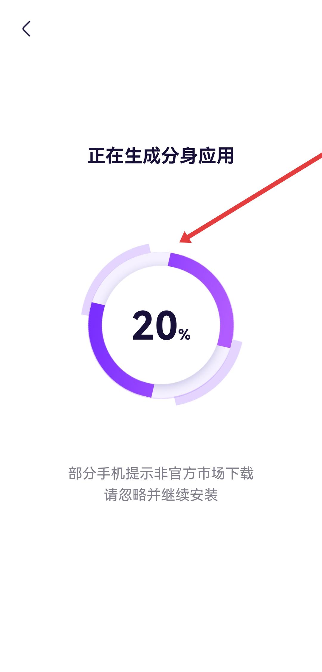 4、等待頁面顯示正在生成分身應(yīng)用的進(jìn)度條加載完成,即可完成分身添加。
