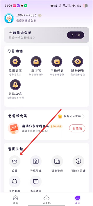 1、打開分身大師應(yīng)用,點擊底部導(dǎo)航欄的我的選項,進(jìn)入個人中心頁面。