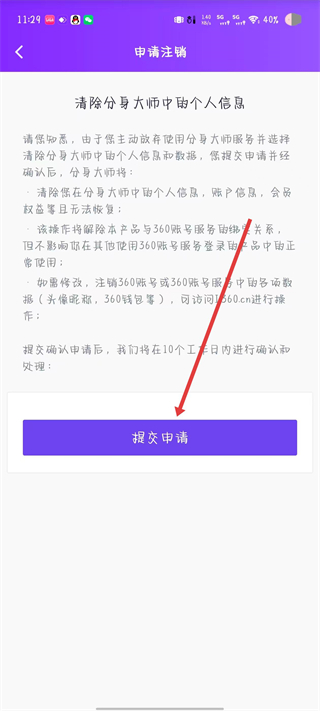 4、在申請注銷頁面閱讀相關(guān)說明后,點擊提交申請按鈕,即可發(fā)起注銷請求。