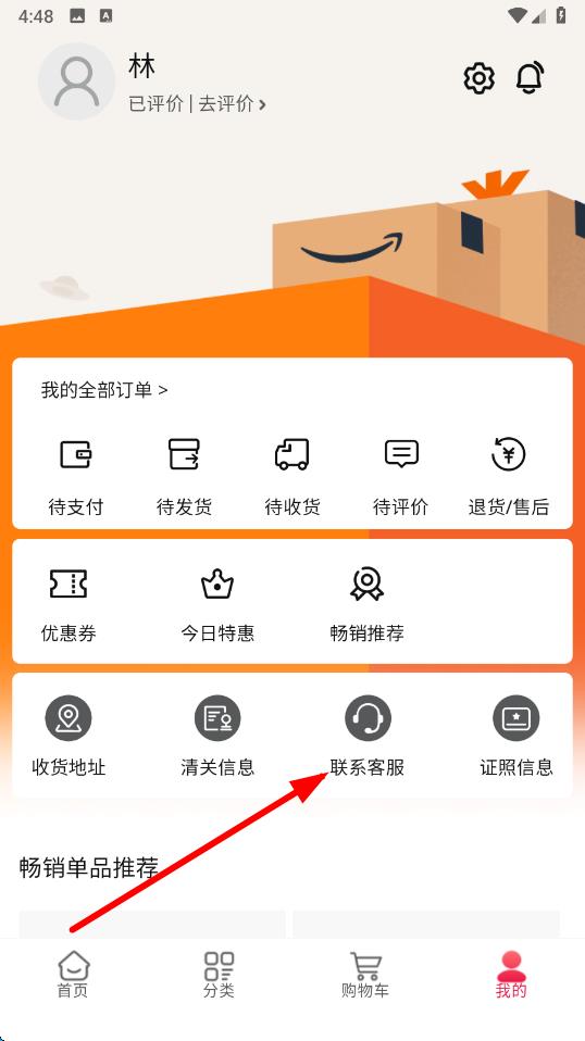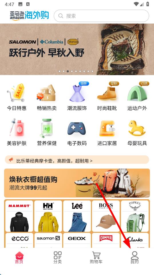1、打開亞馬遜海外購app,點擊底部導航欄最右側(cè)的我的選項,進入個人頁面。