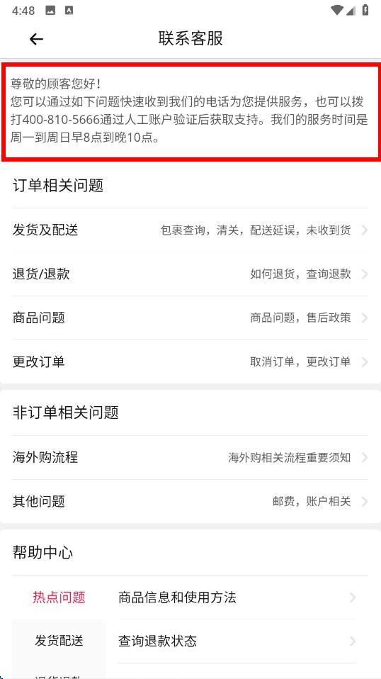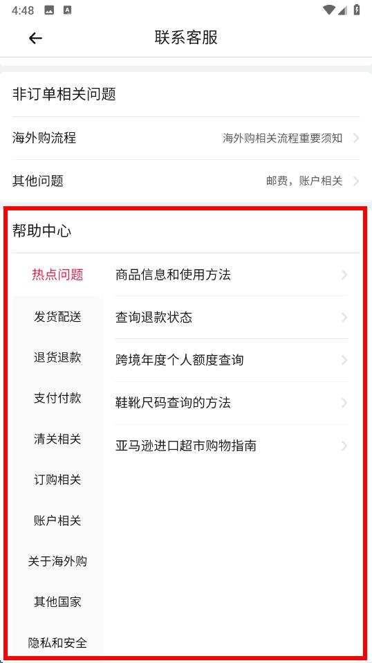 4、此外,還能在聯(lián)系客服界面的幫助中心,查看熱點問題及各類相關問題的解答,獲取幫助。