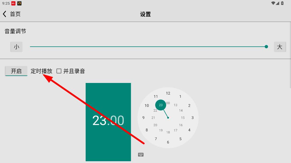 4、在設(shè)置頁面中找到定時(shí)播放選項(xiàng),點(diǎn)擊開啟并設(shè)置定時(shí)關(guān)閉的時(shí)間,完成定時(shí)關(guān)閉操作。