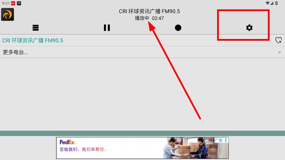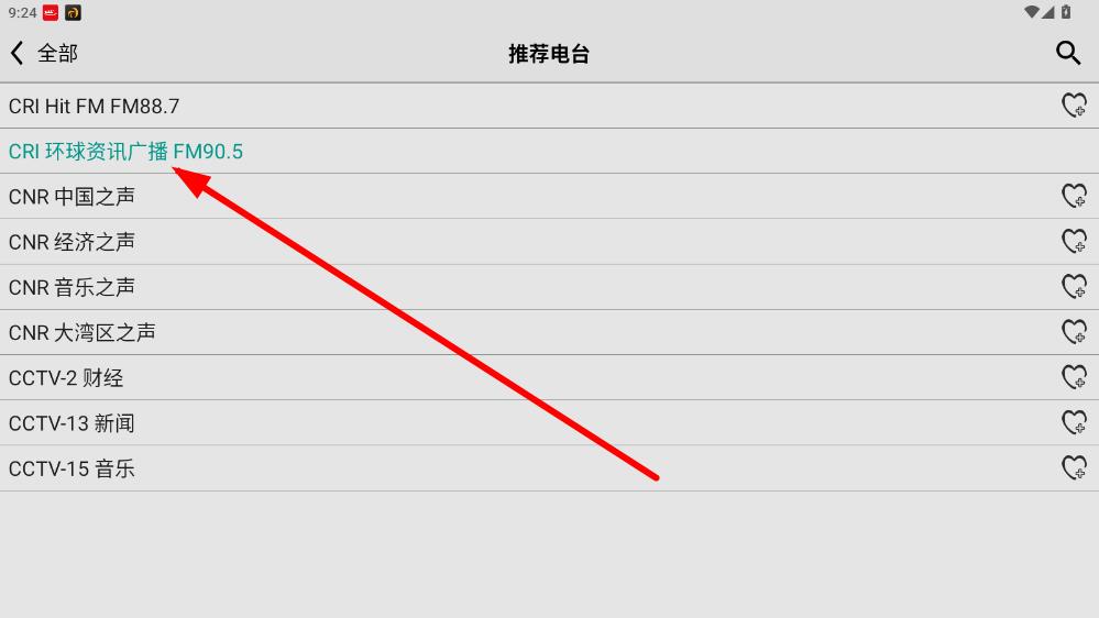 2、在推薦電臺(tái)界面,選擇要收聽的電臺(tái)如CRI環(huán)球資訊廣播FM90.5。